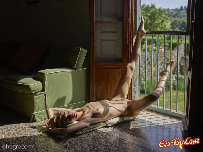 Шокирующие тощая высокая девушка почти без сисек полностью оголившись принялась эротично позировать у окна, присаживаясь в кресло и ложась на пол, раздвигая длинные ножки. В процессе красотка так же засвечивает сексуальную гладко выбритую пилотку.
