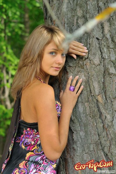 Девушка красавица, соблазнительная блондинка разделась в лесу. Сняв с себя длинное платье и показав сочное тело. Красотка пришла туда на прогулку, но просто гулять по тёмному лесу ей стало скучно и она нашла себе развлечение. Милашка устроила эротическую фото сессию, не боясь что её там застукают...