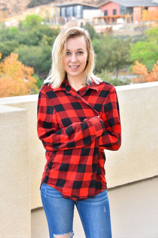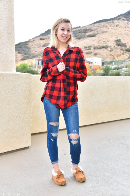 Начав медленно раздеваться на балконе, молоденькая девка снимает рубашку и джинсы, что моментально показывает бритую письку. В будущем обнаженная крошка с маленькими сиськами и возбужденными сосочками перебирается на кровать, где ложась на спинку раздвигает промежность и еще более подробно, даже крупным планом, засвечивать киску.