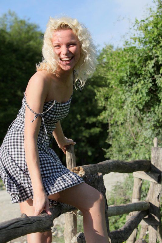 Жизнерадостная блондинка отдыхает в деревне у родственников, а выбравшись в поле неподалёку от посёлка, она показала свою голую бритую письку местному трактористу который с радостью запечатлел всё это на фотокамеру. Стройная девушка очень быстро сняла платье под которым у неё не оказалось трусиков и устроившись в траве с ромашками откровенно позирует перед своим новым другом, любителем женской натуры...