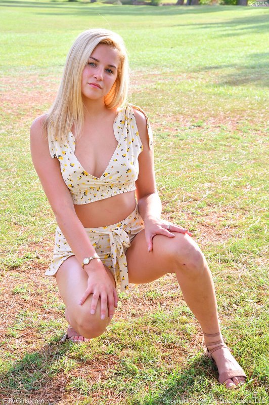 Обаятельная блондинка с голубыми глазами, надев короткие шортики и майку, гуляет в парке и на улице, вертя перед камерой голыми сиськами с красивыми сосками. Упиваясь своей распущенной сексуальностью девушка настолько возбудилась, что совсем позабыла о осторожности, доставая грудь из топика всё чаще, не оглядываясь по сторонам.