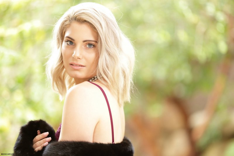Накинув на себя зимнее пальто, очаровательная блондинка с голубыми глазами, в кружевном нижнем белье бордового цвета, соблазнительно кривляется перед фотографом с камерой. Желая продемонстрировать себя с самых возбуждающих ракурсов, стройная девушка в туфлях грациозно садится на корточки, ощущая от всего что с ней происходит дикое удовольствие.