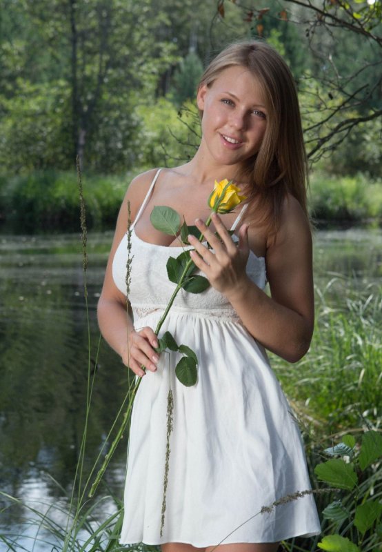 Деревенская девка с большими сиськами на озере