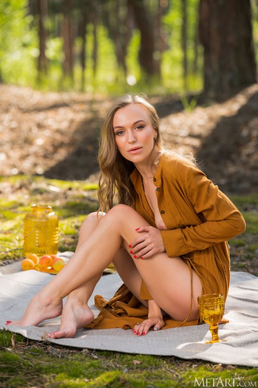 На пикнике в лесу на большой поляне сексуальная телка дала волю своей необузданной страсти и, сорвав с себя скудную одежду, показала на камеру свою красивую сладкую киску крупным планом. Красивая блондинка знает как получить море удовольствия от ласк и тут же встала раком, развратно выпятив свою упругую сочную попку, которую так и хочется шлепнуть.
