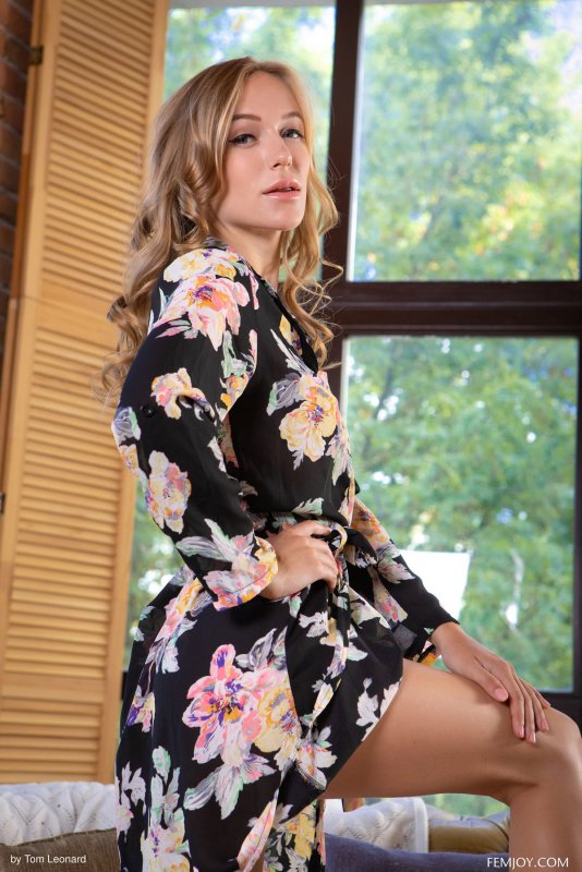 Соблазнительно скинув свой шелковых халатик без трусов, голая сучка с упругими натуральными сиськами чувственно выгибается всем телом перед камерой. Сексуальная блондинка возбуждающе позирует перед камерой, одновременно страстно мастурбируя свою бритую сладкую киску и глубоко засовывая в нее свои длинные шаловливые пальчики.