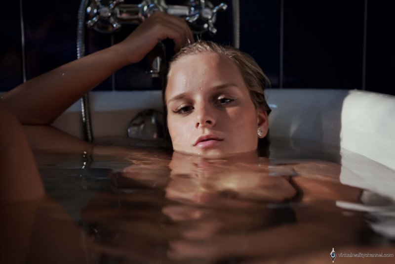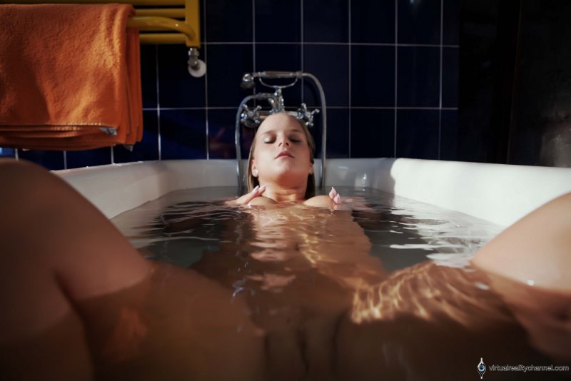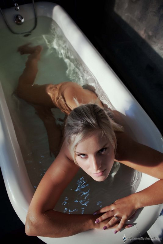 Выключив свет, голая блондинка с натуральными упругими сиськами расслабленно плещется в большой ванне, эротично позируя при этом перед камерой. Выставив на показ свое аппетитное мокрое тело, развратная баба начала чувственно ласкать рукой свою бритую письку и громко стонать от удовольствия.