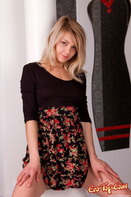 Молодая сексапильная блондиночка снимает платье и стринги под ними, оставаясь перед нами совсем голая и беззащитная. Девушка довольно неординарная и фото с ней находятся на грани безумия, но всё таки возбуждают, вызывая при этом массу эмоций. У девушки отличная фигурка, с пышными, но не большими грудями, такой же пышной попой и шальными глазами. Девушка очень импульсивная и нельзя предугадать что она вытворит на следующем снимке. Голая с взъерошенными волосами и немного диким взглядом - она соблазняет зрителей своей, понятной только ей манерой...