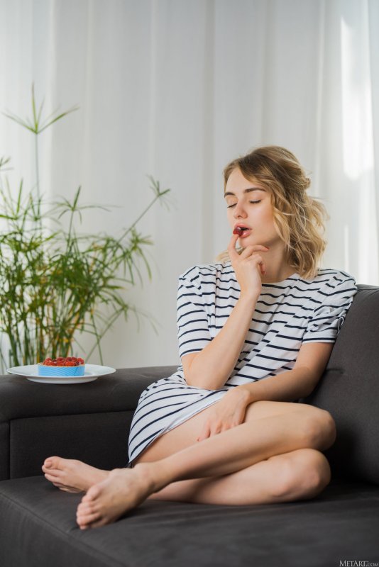 Расслабленно развалившись на большом диване, чувственная красивая модель без нижнего белья на показ раздвинула перед камерой стройные ножки и засветила во всех подробностях бритую розовую киску. Постепенно раздевшись до гола, гибкая девушка с аккуратной упругой грудью в разных позах принялась демонстрировать свою красивую подтянутую попку, развратно раздвигая руками сочные мягкие ягодицы.