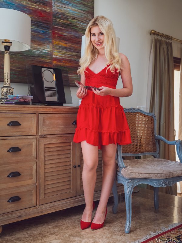 Игриво кривляясь перед камерой, молодая кокетка в милых трусиках бесстыже задрала короткое красное платье и, сдвинув в сторону трусы, засветила бритую писю. Постепенно раздевшись до гола, белобрысая девица с натуральными титечками принялась развратно выпячивать свою сочную мягкую задницу, напрашиваясь на жесткий страстный секс.