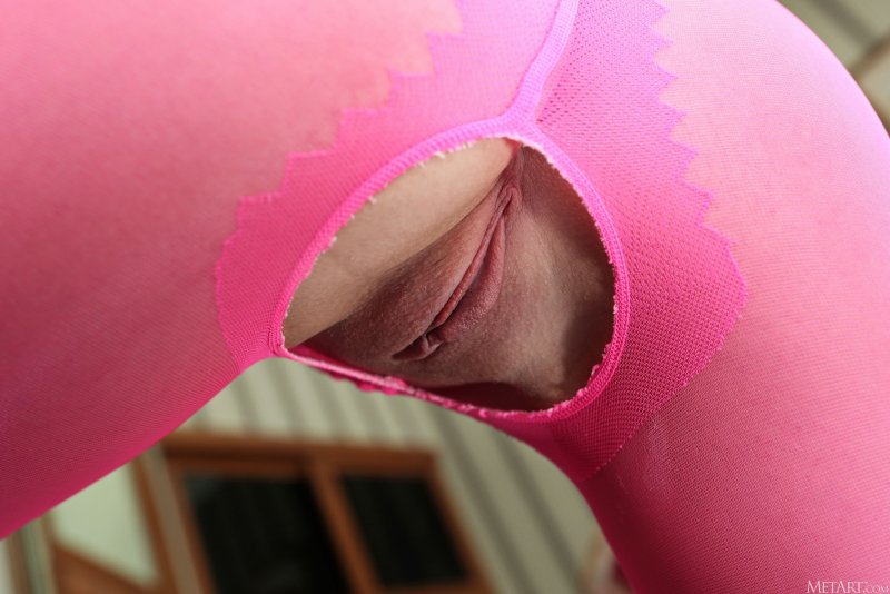 Кокетливо сжимая руками свои натуральные упругие сиськи, миленькая молодая скромница в розовых колготках бесстыже раскрыла перед нами свою голую промежность и через большую дырку засветила на камеру свою бритую розовую письку с узкой влажной щелочкой.