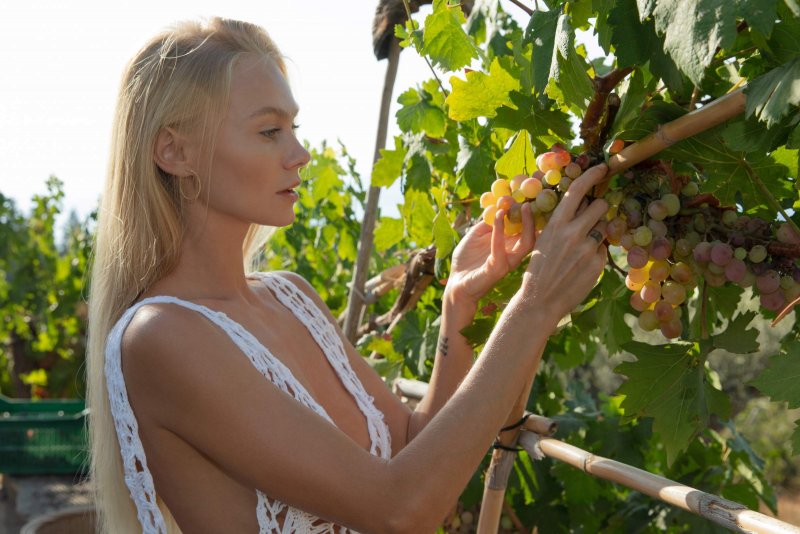 Соблазнительно медленно сняв с себя просвечивающий легкий наряд, молодая красивая блондинка вовсю светит своими выдающимися голыми прелестями на даче. Увлеченно собирая виноград и делая из него вино, соблазнительная дамочка с упругими сиськами с разных ракурсов умудряется показать на камеру свою крепкую задницу и гладкую маленькую киску.