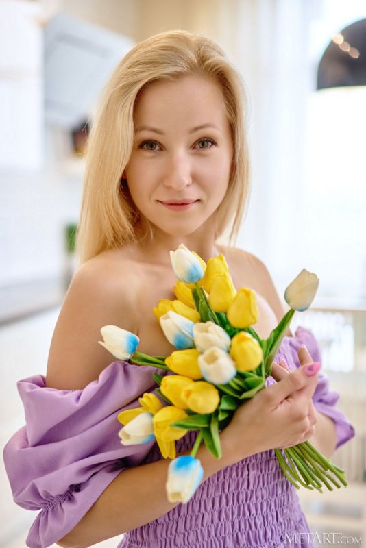 Получив в подарок цветы и захотев как-то отблагодарить своего поклонника, нежная девушка с плоскими титьками и маленькими острыми сосками постепенно разделась до гола и, устроившись на столе с широко раздвинутыми ногами, предлагает поскорей войти в ее бритую письку.