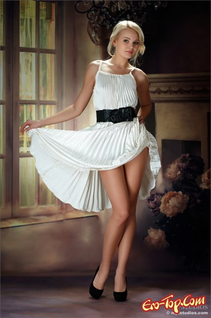 Молодая и невероятно сексуальная блондинка Talia снимает красивое вечернее платье и оказывается перед нами совершенно голенькой, демонстрируя своё потрясающее стройное тело, на которое невозможно смотреть без возбуждения и соблазна окутывающего и пьянящего мозг, от чего тот рисует самые сладкие и животрепещущие картины, ради которых можно отдать многое... Но остановимся на фигуре блондиночки и её желанном теле - прежде всего хочется сказать, что у девушки маленькая и очень красивая грудь с маленькими сосочками, которые очень гармонично на ней смотрятся, так же у девчонки потрясная попка и чарующая киска, что вкупе с стройненькой фигуркой сводит зрителей с ума, делая из них заклятых поклонников этой очаровательной девчоночки...