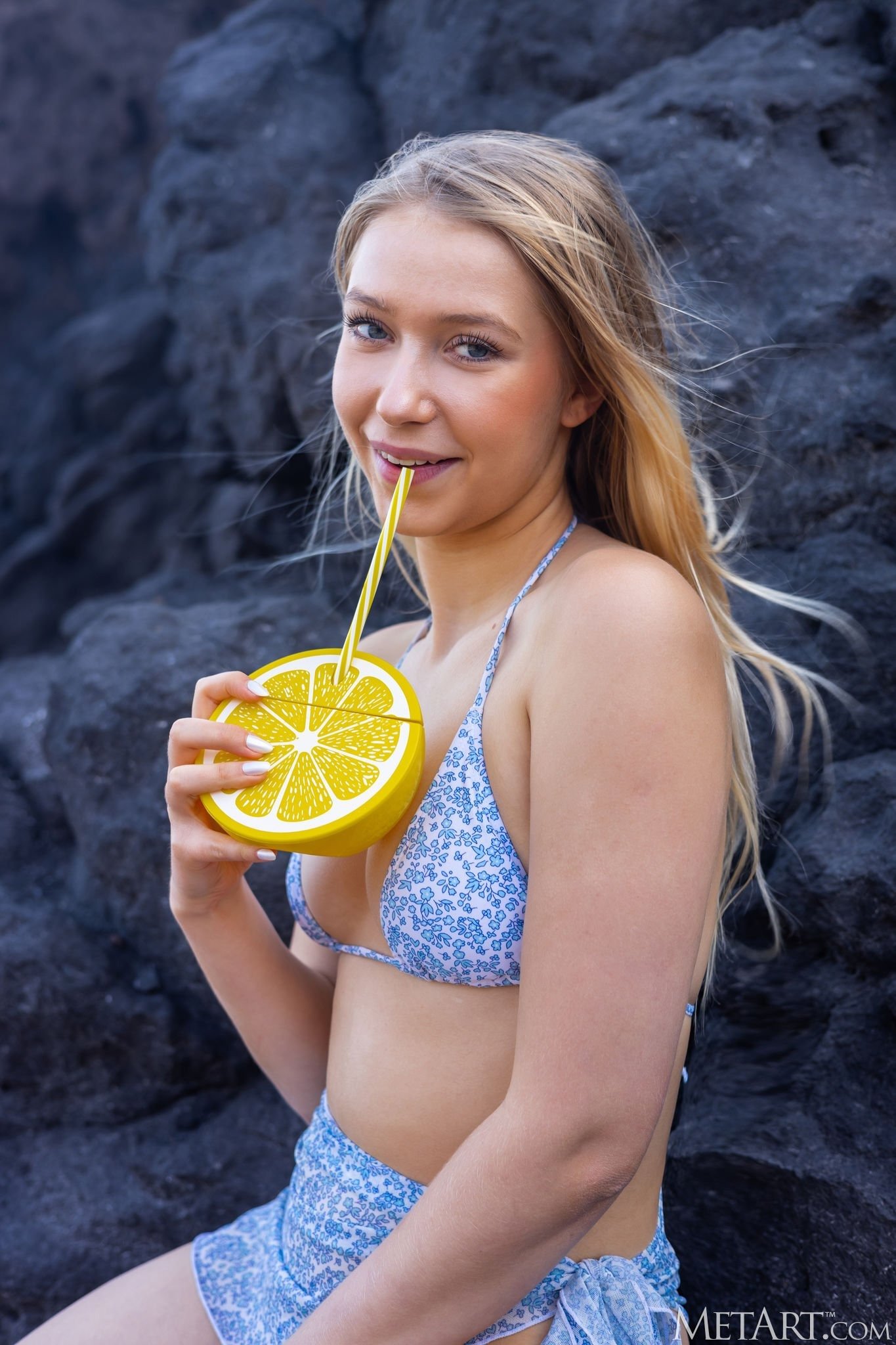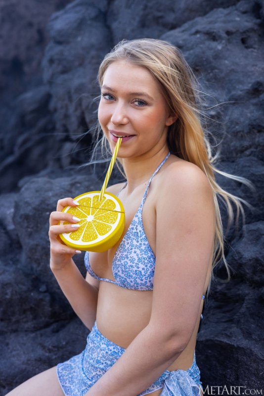 Спрятавшись ото всех с укромном безлюдном месте и кокетливо стянув с себя перед камерой открытый купальник, развратная блондинка с миниатюрными титьками бесстыже выпячивает крупным планом свою сочную круглую задницу и возбуждающе светит между ног бритой маленькой писей на пляже.