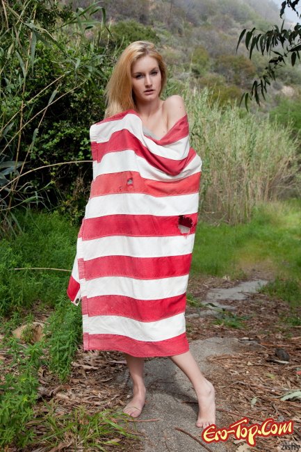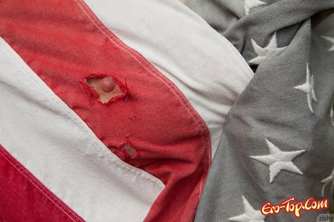 Нашел девушку у которой без спорно большие супер сиси. Эта американская патриотка которая готова отдать за свою страну жопу. За место одежды ей выдали флаг которым она и накрыла свое молоденькое тело. Зайдя в лес телка показала огромные сиськи накаченные силиконом, в центре этих шаров виднелись маленькие соски.