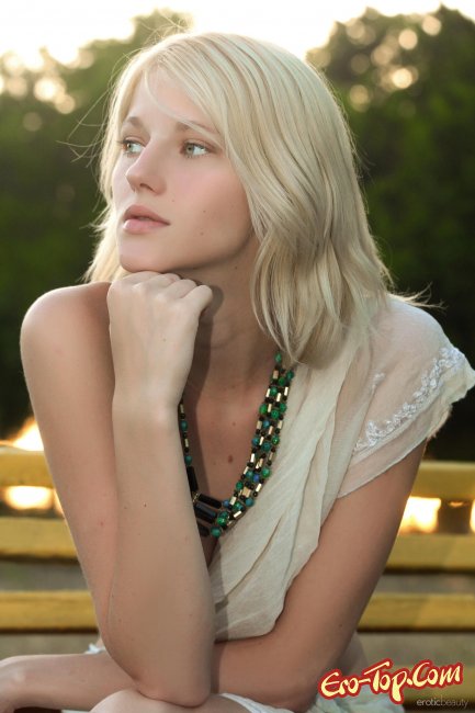 Милая зеленоглазая блондинка с белыми волосами, раздевается догола в общественном месте, а именно в парке, где ходит много народу и смотрит на ее голенькое тело. Девушка с худым телом снимает с себя шаль, оголяя небольшие титьки, потом куколка со стройными ножками встает на земеле на четвереньки и выставляет задницу.