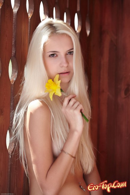 Возбуждающая молоденькая девочка со светлыми длинными волосами, разделась перед камерами догола и показала все свои прелести на фотографиях. Белобрысая куколка сняла с себя короткие шортики с желтыми трусиками и показала нам свою маленькую попочку. Она ставит ее раком, чтоб хорошо можно было разглядеть ее гладкую писю с анальной дырочкой.