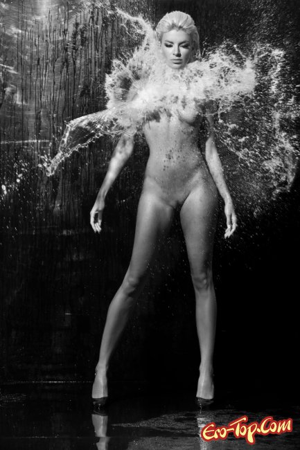 Очень сексуальные черно-белые эротические фото с красивой девушкой, которая соблазнительно позирует, демонстрируя свои прелести. Очаровательная блондинка снимает с себя белоснежную рубашку вместе со штанами, под которыми еще черные колготки, в которых малышка выглядит очень возбуждающе.
