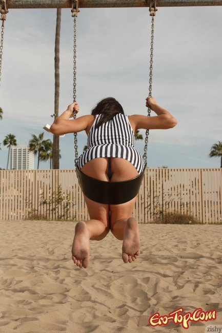 Игривая привлекательная деваха отправилась на пляж со своим знакомым фотографом, чтобы тот запечатлел ее стройную фигурку, но модель так увлеклась, что даже показала красивую попку, приспустив трусики. Кроме этого и так хватало достаточно развратных кадров, ведь смазливая брюнетка как специально делала акцент на своих интимных местах во время того как мило дурачилась.