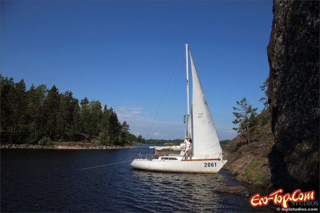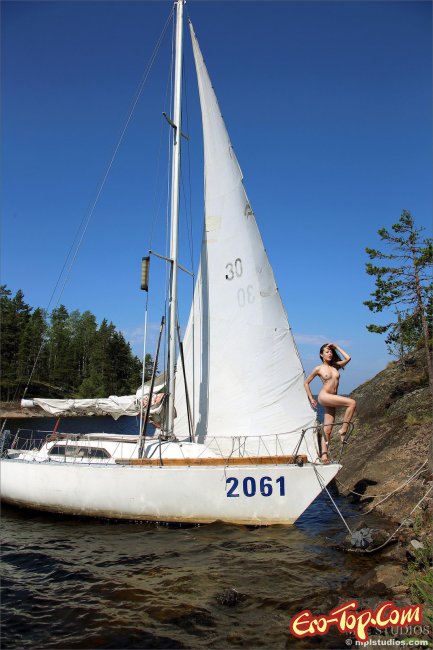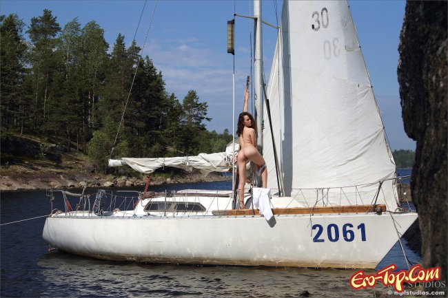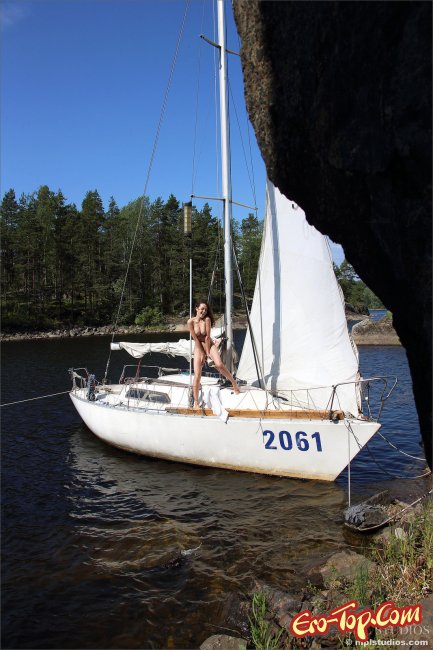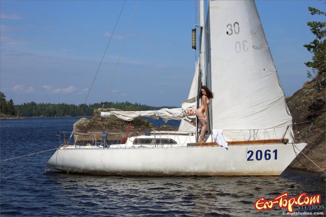 Сексуальная девушка оказалась на невероятно большом паруснике, на котором хотелось только одного, обнажаться и показывать себя. По этому, уже через несколько минут привлекательная милашка разделась и принялась демонстрировать себя, стараясь принимать разнообразные позы.