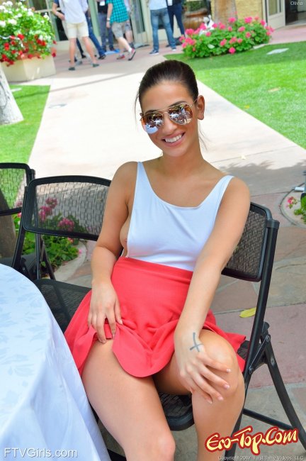 Красивая девушка решила выйти в публичное место, желая попозировать на камеру. Заглянув в кафе она начала приподымать юбку и светить киской, но не снимая белых трусиков. Выбирая разнообразные ракурсы брюнетка сексуально улыбалась и старалась по максимуму показать свое тело, но не раскрывая всех его секретов.