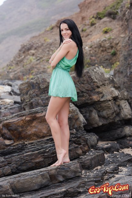 Брюнетка сняла платье показав киску на камнях