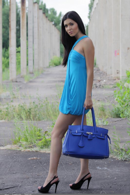 Выбрав максимально безлюдное место на улице, симпатичная крошка со стройной фигурой лишилась платье и начала позировать голой в туфлях, в процессе чередуя самые вызывающие позы. Таким образом худенькая девушка с маленькими сиськами смогла подробно показать длинные сексуальные ножки и гладенький лобок с возбуждающей бритой писькой.