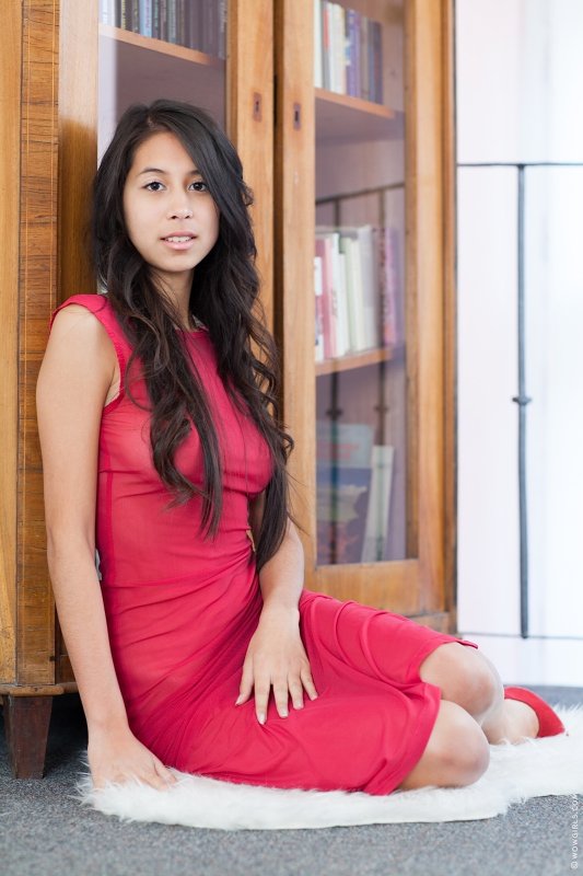 Начав эротично позировать на полу перед камерой, очаровательная длинноволосая азиатка медленно снимает с себя полупрозрачное красочное платье. Обнаженной, сексуальная девушка с натуральными сиськами часто присаживается на корточки и раздвигает ноги, засвечивая бритую письку с гладким лобком.