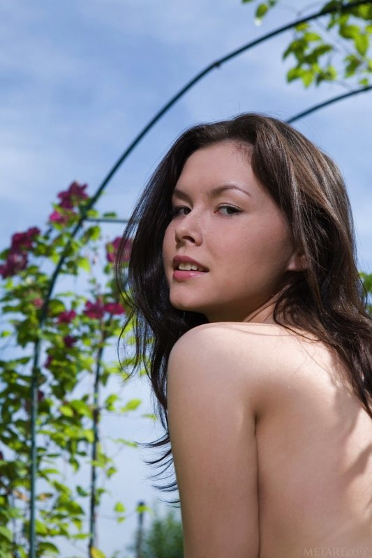 Не скованная скромностью, тощая брюнетка с длинными волосами и пушком на лобке соблазнительно красуется перед камерой и голая гуляет на даче, мило улыбаясь и порой присаживаясь на траву. При всём этом, молодая девушка с натуральными торчащими сиськами порой поглаживала себя руками, желая почувствовать ласку.