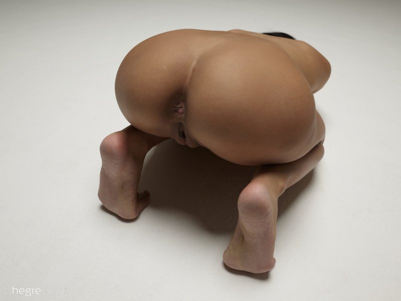 Представ перед нами совершенно голой с первых же кадров, азиатка с худенькой фигурой встаёт на четвереньки раком на полу и во всей красе показывает сексуальную бритую письку и упругую попку с анусом. Брюнетка позволяет запечатлеть её прелести крупным планом, что бы мы по достоинству оценили их.