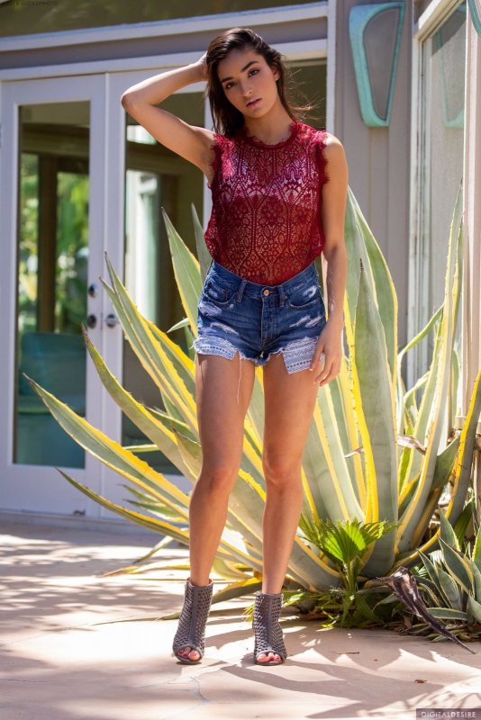 Решив порадовать нас соблазнительными снимками, молодая экзотическая красотка позирует перед камерой и снимает с себя короткие джинсовые шорты, а затем и белые трусики стринги. Оставшись совершенно голой, сексуальная брюнетка с плоскими сиськами устроилась на подушке и удивляя нас возможностями своего гибкого тела демонстрирует сладкую попку и бритую письку.