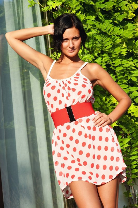 Начав эротично позировать на улице, привлекательная девушка в коротком платье довольно быстро раздевается и показывает сексуальную выбритую письку и прочие свои прелести. В обнаженном виде стройная красотка так же делала акцент на натуральных сиськах, одновременно с этим поглаживая гладкий лобок руками.
