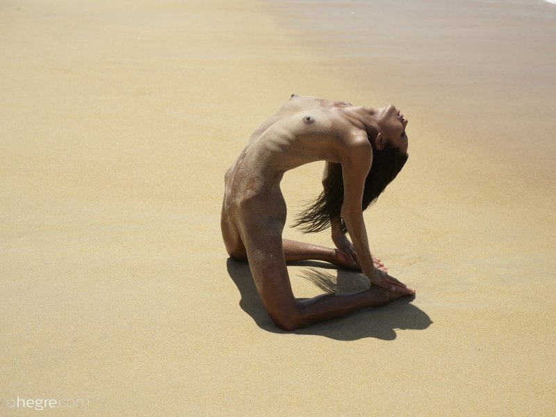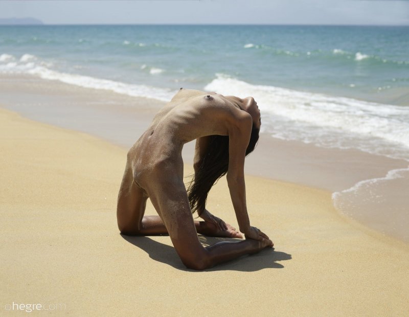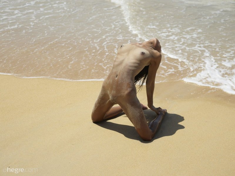 Лежа на пляже, смуглая азиатка с худым голым телом, часто меняя разные ракурсы, нежно поглаживает промежность руками и раздвинув рагатку засвечивает бритую письку. Грациозно выгибаясь, стройная девушка немного намочилась в море, а так же продемонстрировала маленькие сиськи и аккуратную задницу.
