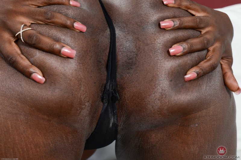 Улыбаясь на камеру, толстая негритянка снимает с себя облегающий купальник, выставляя на показ свои большие висячие сиськи, и показывает большую жирную жопу. Затем толстушка устраивается на диване раком и раскрывает свои пухлые ягодицы руками, открывая вид на черную промежность.