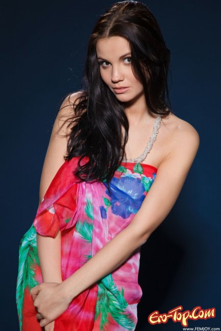Сисястая брюнетка позирует прикрываясь лишь одним платком, который впрочем совсем не мешает нам разглядеть её во всей красе. У девушки большая грудь, стройная фигурка и соблазнительная киска. Все эти прелести брюнеточка не скромничая показывает фотографу и нам, наслаждаясь тем фактом, что её голое тело увидят миллионы людей по всей планете...