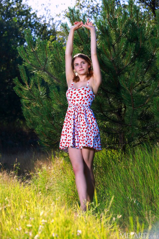 Молоденькая скромная милашка в коротком летнем платье без трусов игриво задирает юбку перед камерой и засвечивает свою голую письку. Раздевшись до гола, сексуальная детка с большими натуральными сиськами устраивается на травке и страстно позирует раком, демонстрируя крупным планом свою упругую попку и сочную гладкую киску.
