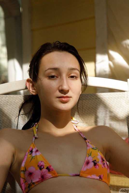 Вдоволь наплававшись в большом прохладном бассейне, мокрая девка игриво оголила свои маленькие титьки с темным острыми сосками прямо на камеру. Сняв с себя бикини, молодая девица залезла под тугие струи душа и принялась развратно позировать все телом, засвечивая свой подстриженный лобок.