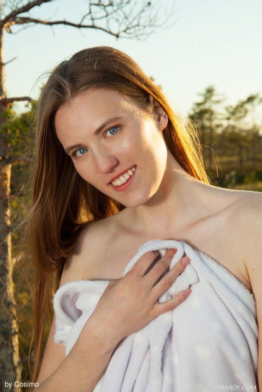 Вдали от домов скинув с себя прикрывающее тело полотенце, голая простушка развратно показывает все свои скромные прелести на камеру. Деревенская девка на деревянном мостике соблазнительно позирует всем телом, демонстрируя свои маленькие плоские титьки и мягкую плоскую попу.