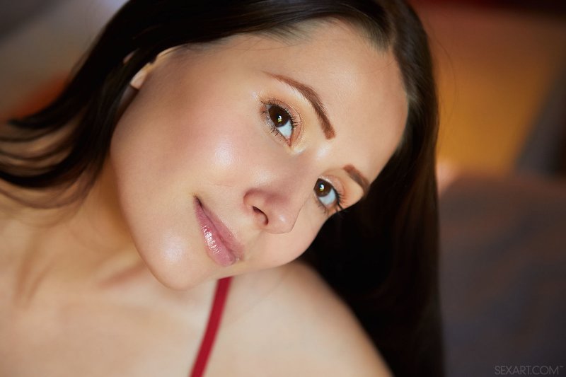 Лежа перед камерой на большой кровати, стройная бесстыжая брюнетка в красном нижнем белье сняла с себя лифчик и на показ широко раздвинула ноги, засвечивая крупным планом свою бритую сладкую киску. Затем раздевшись до гола, возбужденная женщина с натуральной грудью начала страстно извиваться всем телом в разных эротичных позах и дрочить пальцами свою влажную розовую дырочку.