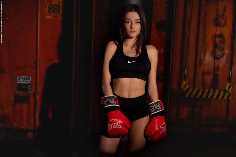 После выматывающего жесткого боя, потная спортсменка в боксерских перчатках высоко задрала свою обтягивающую майку и полностью оголила большие красивые буфера. Медленно раздевшись до гола, сексуальная горячая красотка с шикарными формами безумно эротично изгибается перед камерой, засвечивая свою аппетитную попу с гладкой писей.