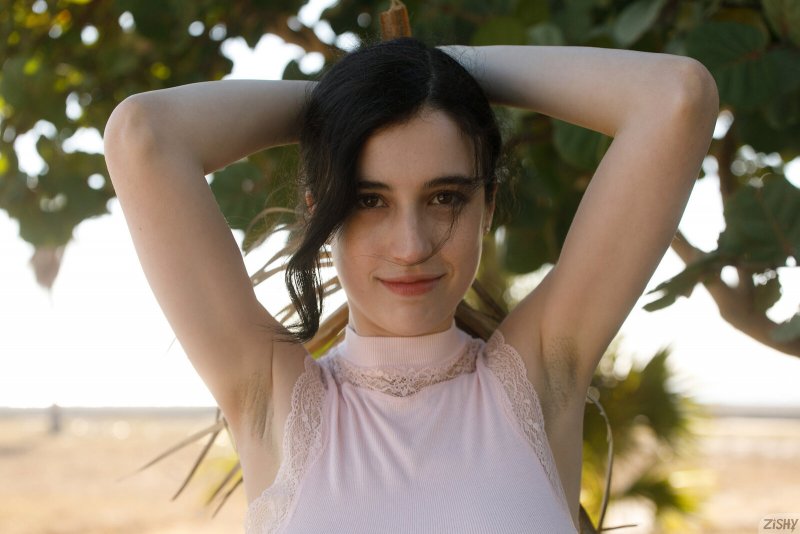 Игривая брюнетка прогуливается в свободных шортиках и как бы ненароком засвечивает перед нами свою бритую киску, которая робко выглядывает из под коротких шорт. А что бы ещё больше подстегнуть наш интерес к своей персоне, девушка стягивает майку и открывает свои чудесные титьки внушительного размера и симпатичной формы.