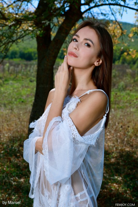 Быстро скинув с себя всю одежду и удобно устроившись на мягком ковре под деревом, голая девушка без стеснения светит своими миниатюрными прелестями на природе. Хвастаясь перед камерой своим худым молодым телом, брюнетка с красивой упругой попой развратно встает в позу раком, демонстрируя всем свои самые интимные нежные места.