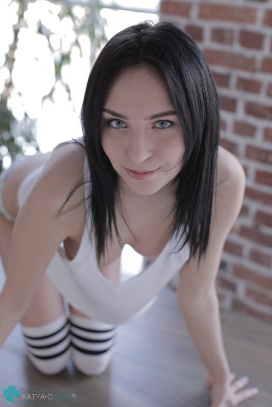 Сидя перед камерой на большом столе, симпатичная брюнетка в длинных белых гольфах игриво позирует всем телом и медленно снимает с себя милые трусики. Раздевшись до гола, обнаженная девушка с аккуратными натуральными сиськами развратно встает в позу раком, крупным планом выпятив свою аппетитную упругую попу с бритой пухлой киской.