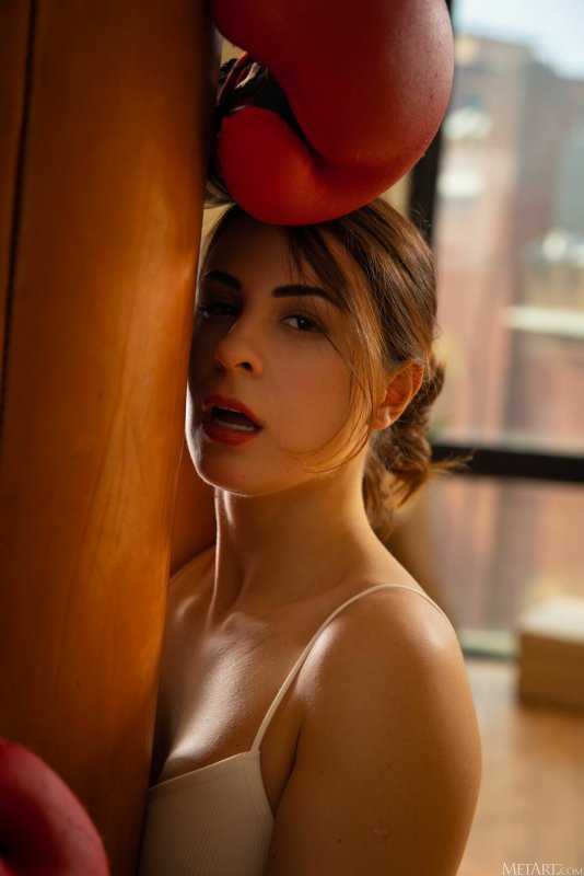Закончив свою тренировку с боксерской грушей, уставшая потная спортсменка решила передохнуть и тут же разделась до гола, дав остынуть своему разгоряченному телу. Сексуальная баба с голыми упругими сиськами развратно позирует в спортивном зале, открыто выпячивая и подставляя как можно ближе свою бритую пизду с волосатым лобком.