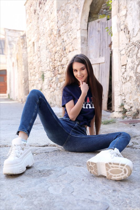 Спрятавшись со своим парнем в узком пустом переулке, молодая развратная детка медленно стянула с себя обтягивающие джинсы и бесстыже оголила свою красивую упругую попу. Игриво виляя ею прямо перед носом, возбужденная брюнетка крупным планом подставляет ее на камеру и подставляет бритую пухлую писечку навстречу горячему твердому члену.