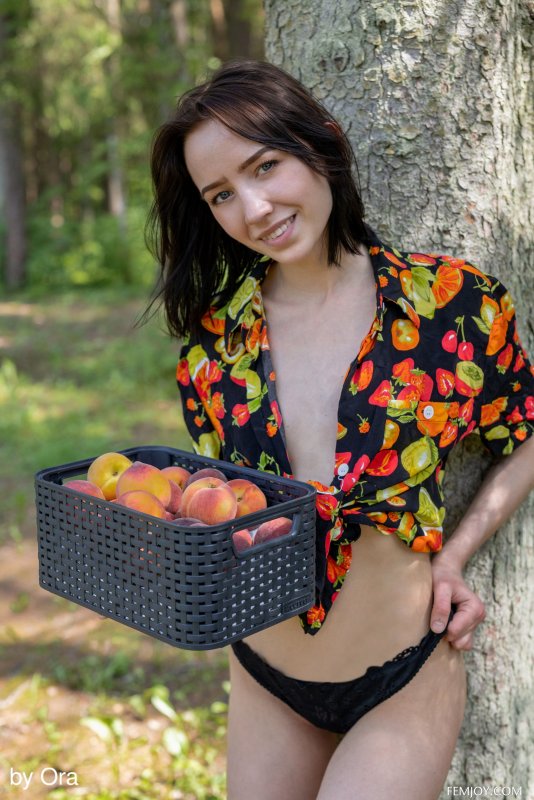 Чувственно извиваясь всем телом о ствол дерева и постепенно снимая перед камерой всю одежду, бледная длинноногая худышка с маленькими титьками опустилась голышом на землю и крупным планом показала нам свою бритую сочную пизду с мясистыми половыми губами.