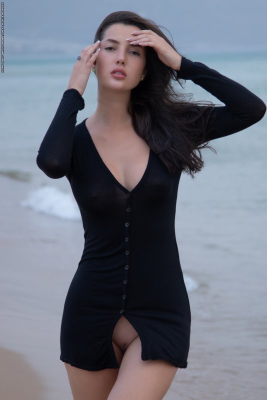 Решив похвастаться перед всеми своими красивыми упругими сиськами, горячая телка медленно снимает с себя всю одежду и страстно позирует на пляже голышом. Расслабленно лежа на песке и наслаждаясь накатывающими на нее волнами, сексуальная женщина с возбуждающими формами соблазнительно вытянула свои красивые ноги и мельком засветила бритый лобок.