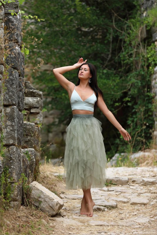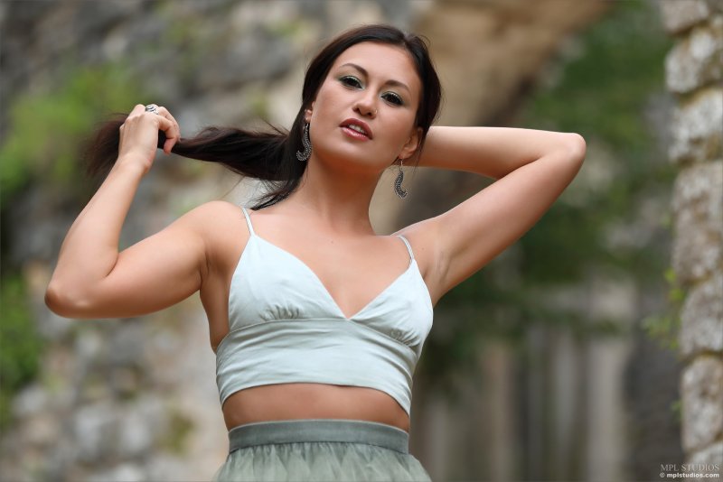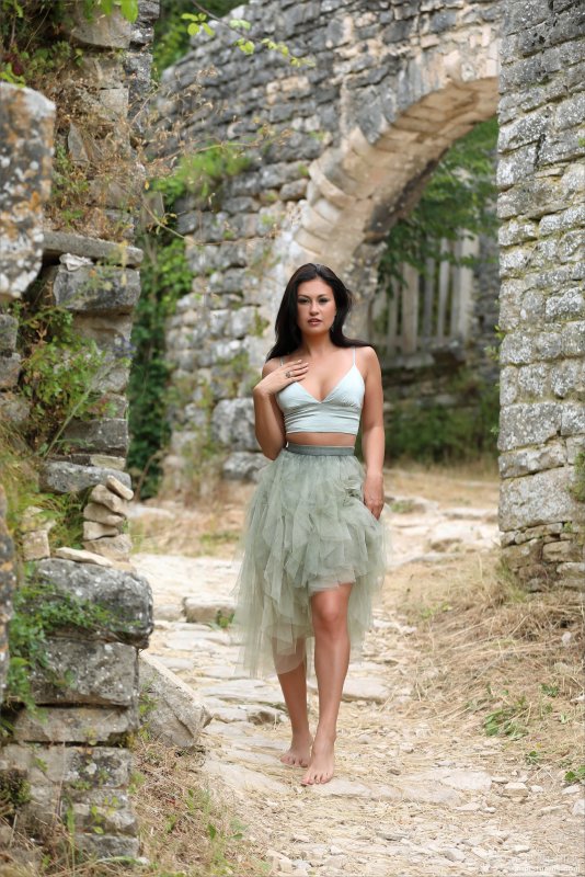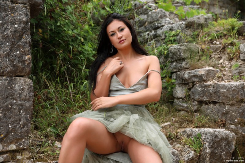 Кокетливо задирая перед камерой свою пышную юбку, загорелая сексуальная брюнетка без трусов с удовольствием оголила свою нежную упругую попу. Затем с выставленными на показ миниатюрными титечками горячая чертовка соблазнительно задирает свои стройные ножки и с разных интригующих ракурсов засвечивает перед нами гладкую нежную киску.