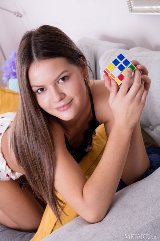 Кокетливо теребя на себе шелковую пижамку и постепенно стянув ее со своего стройного нежного тела, молодая девушка с большой сочной пиздой между ног развалилась голышом на мягком диване и, вертясь на нем в самых откровенных позах, с большим удовольствием раскрывает нам свои самые интимные места.