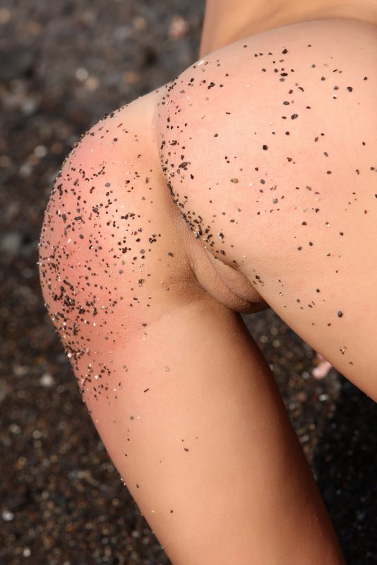 Горячая сексуальная брюнетка снимает с себя купальник и развратно позирует обнаженной на пляже. Страстно извиваясь всем телом на мокром песке, стройная дамочка с маленькими титьками лежит перед камерой с широко раздвинутыми ногами и бесстыже светит между ними бритую пухлой писей с мохнатым лобком.